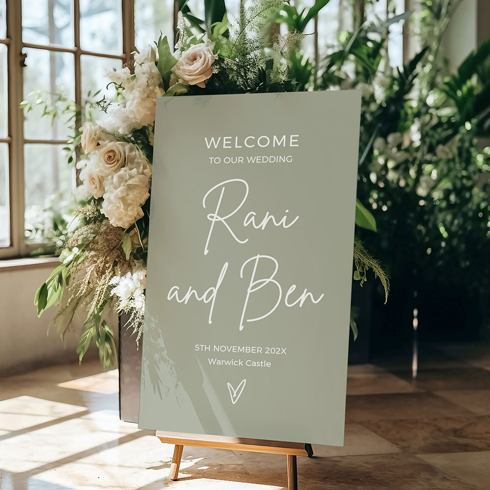 We are So Happy You're Here, Sage Green Wedding Table Seating Plan Foam Boards in three sizes. Other foam board colours available (see the colour chart, or request a custom colour).