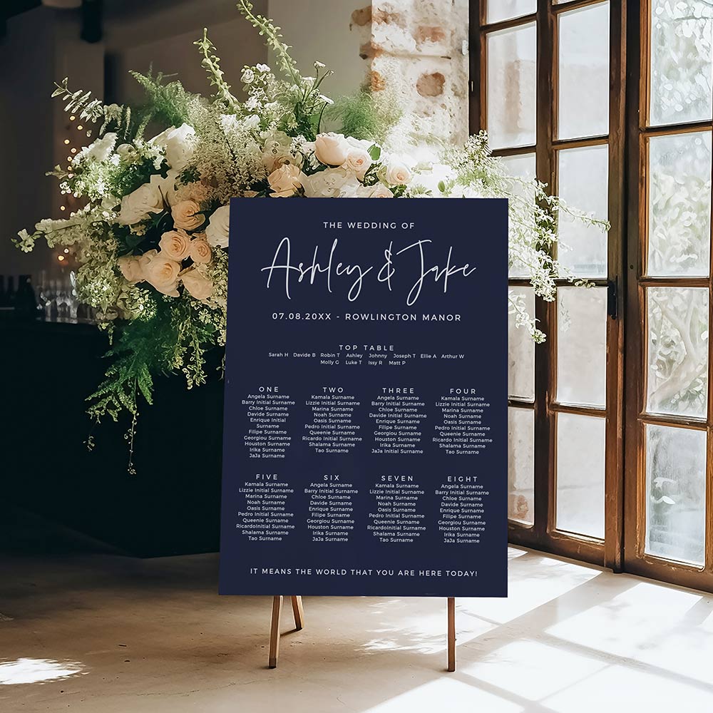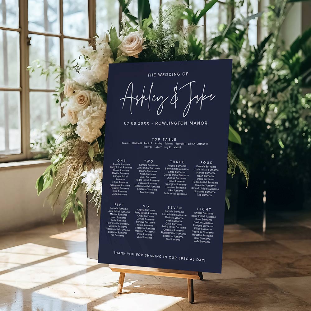 French Navy Wedding Table Seating Plan Foam Boards in three sizes. Other foam board colours available (see the colour chart, or request a custom colour).