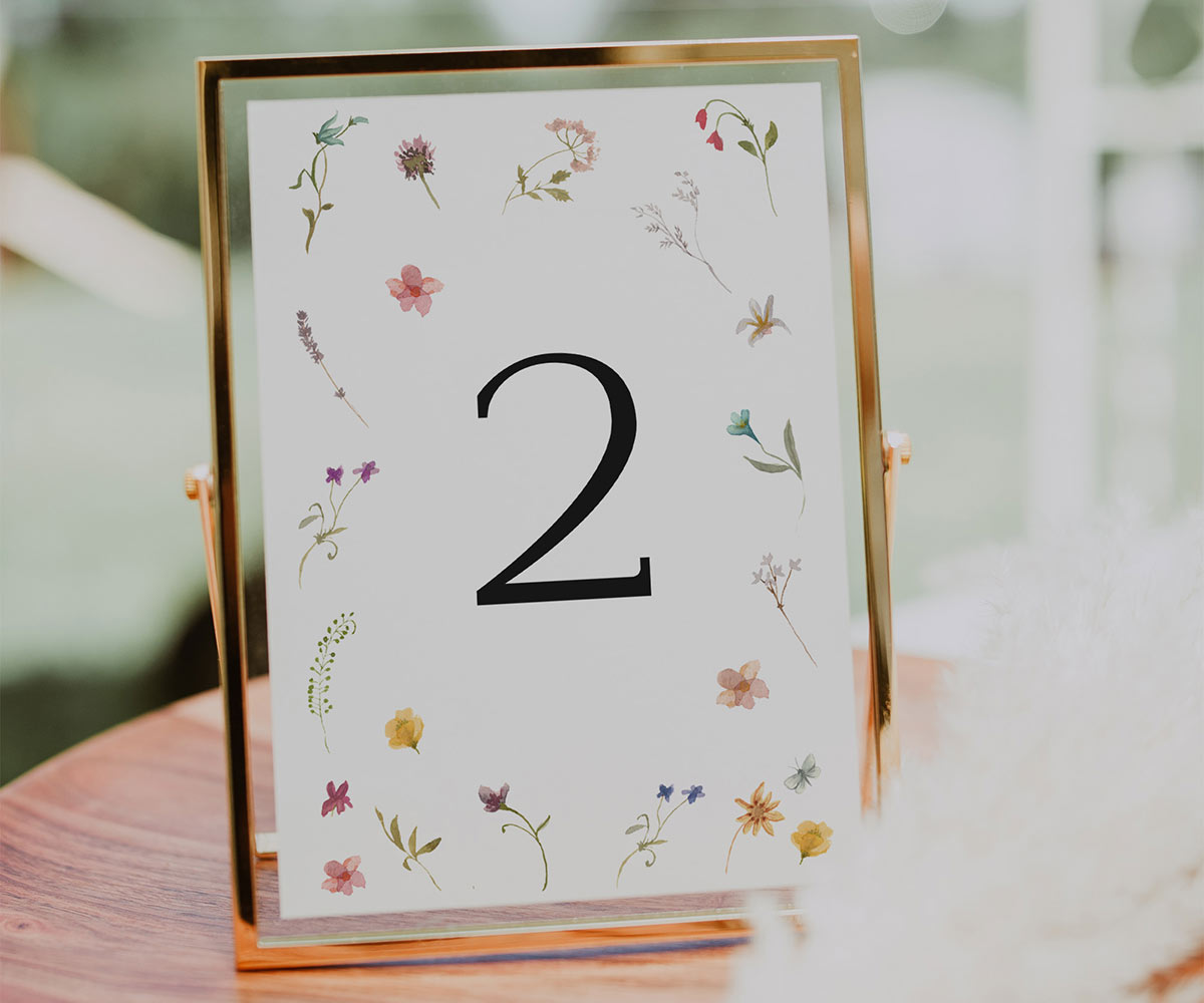 With a pretty wildflower design, these table numbers are printed on smooth thick white card and come in two sizes: