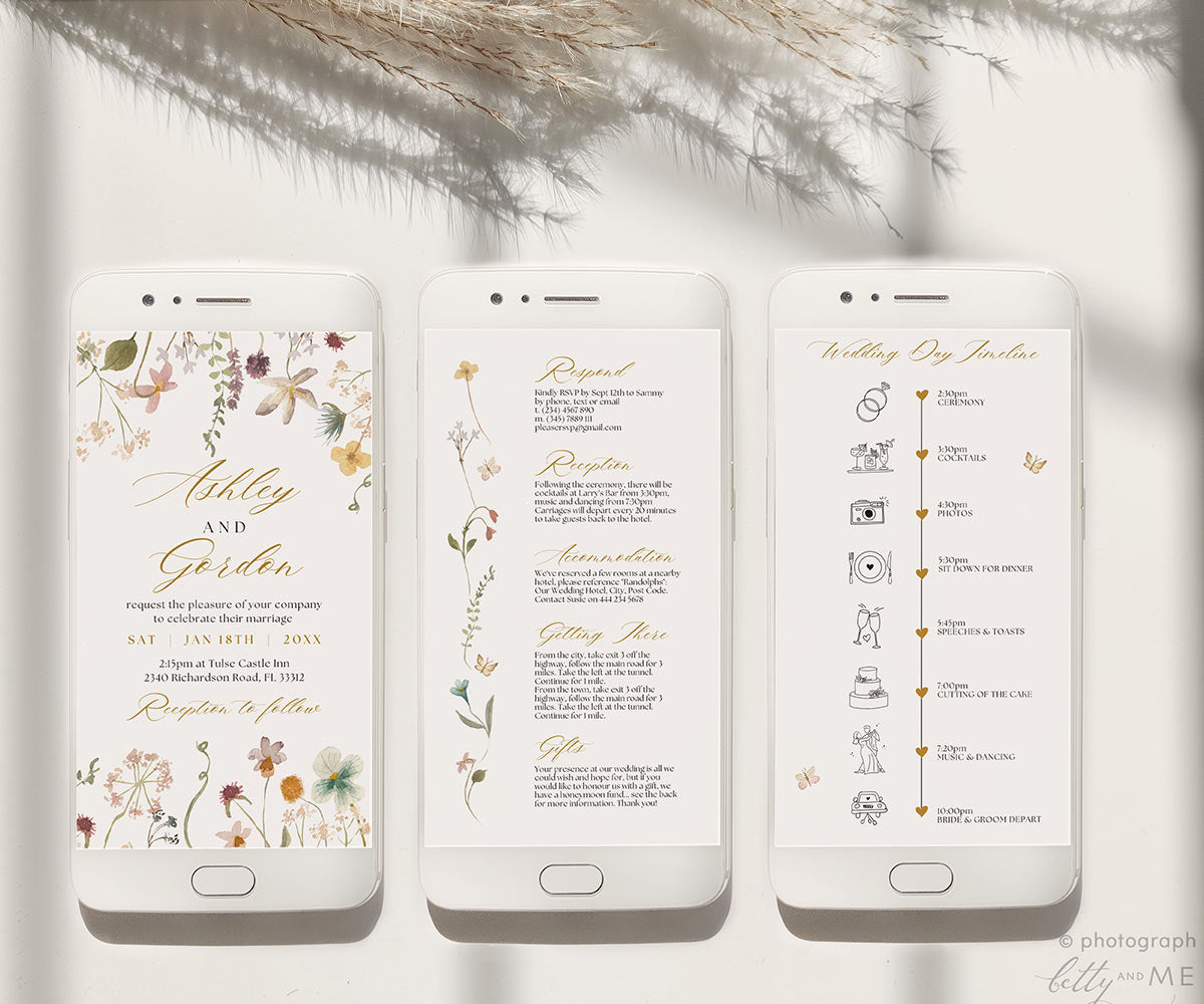 Fully personalised to include all your wedding details, these gorgeous 5x7" wildflower wedding invitations include complimentary envelopes: